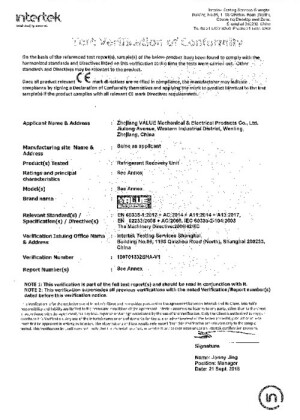 VALUE VRR12LOS-R32 Certification