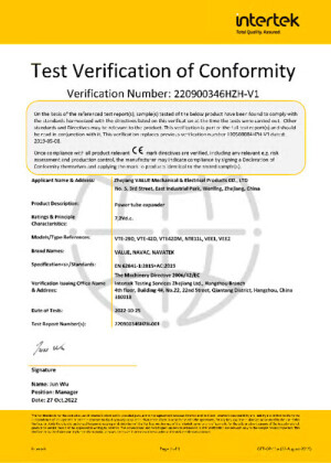 VALUE VET-19LI Certification