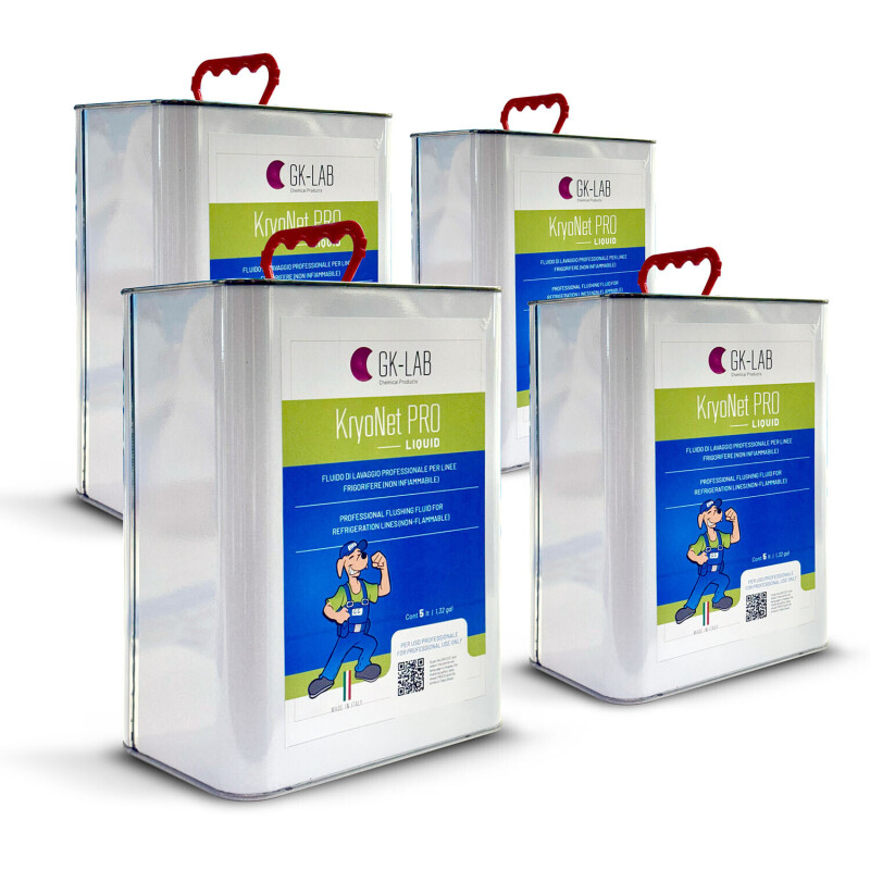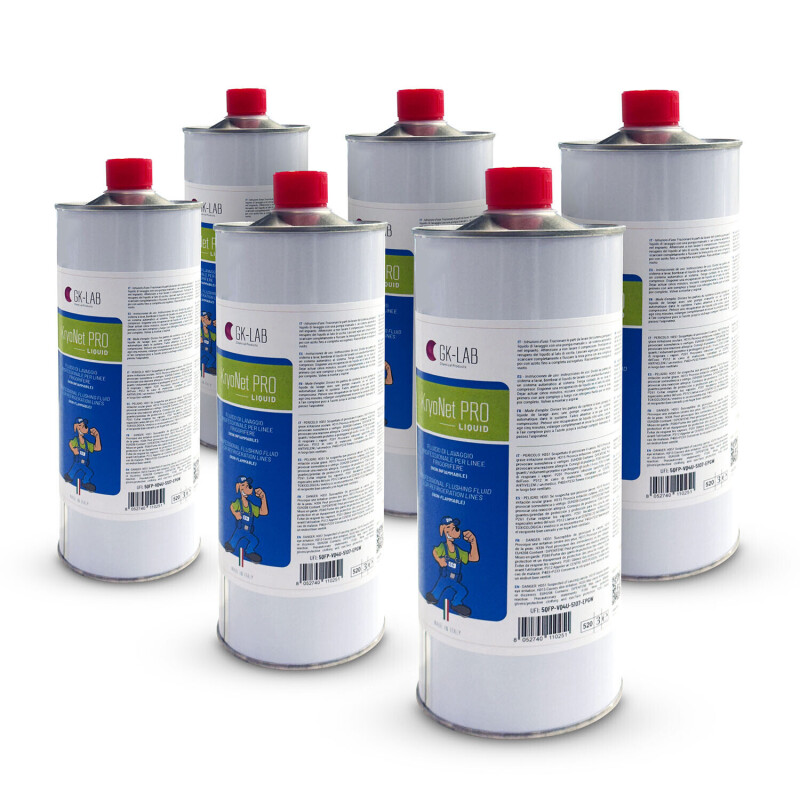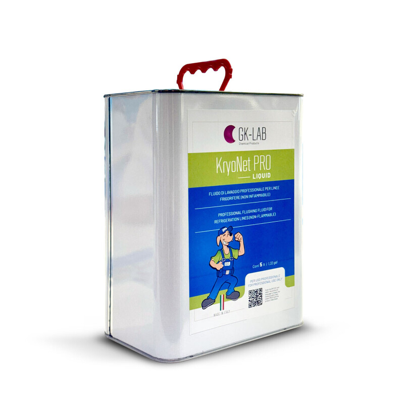 KryoNet PRO is a professional non-flammable solvent with high degreasing performance, designed for internal cleaning and flushing of refrigeration and air conditioning systems. Ensures fast evaporation, effective removal of oil residues and contaminants, and maximum operational safety thanks to nitrogen pressurisation.