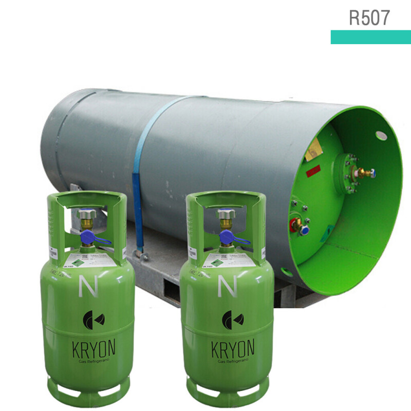 Reclaimed Kryon® 507 (R-507) is an azeotropic HFC refrigerant blend (primarily R-125 and R-143a) with characteristics equivalent to virgin R-507, complying with the AHRI-700-2017 quality standard. The gas reclamation process is performed at authorized facilities in accordance with European F-Gas Regulation (EU) No. 517/2014, and includes labeling that specifies the batch number and reclamation site details.
