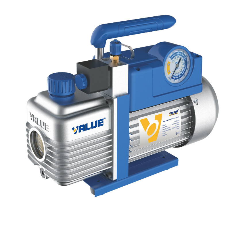 The VALUE 198 L/min dual-stage vacuum pump is designed for HVAC/R technicians who need a robust and high-performance tool for effective evacuation before refrigerant charging. Its dual-stage design allows it to achieve a very deep vacuum of approximately 15 microns (2×10⁻¹ Pa), essential for removing moisture and contaminants from the system before critical operations.