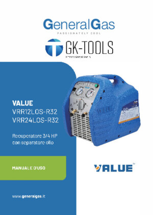The VALUE VRR12LOS-R32 is a portable refrigerant recovery unit equipped with a 3/4 HP oil-less compressor and an integrated oil separator, designed for fast and reliable refrigerant recovery in HVAC/R systems. The machine supports push/pull mode and is also suitable for use with A2L refrigerants such as R32 and low-GWP HFO blends.
