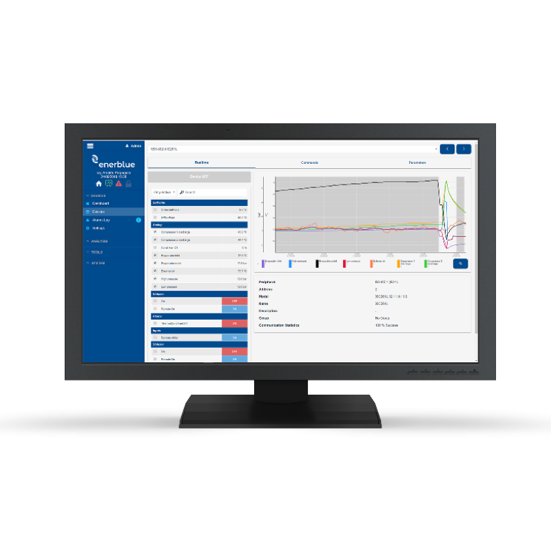- Connessione remota in tempo reale alle unità Enerblue (chiller, pompe di calore, sistemi idronici)