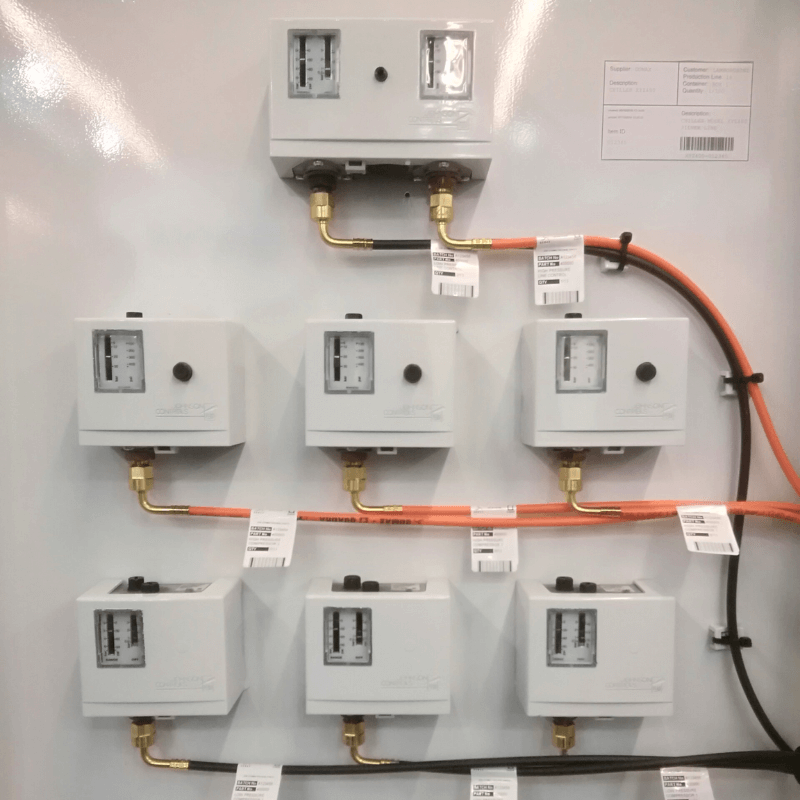 Collegamento di manometri, pressostati e punti di prova della pressione.