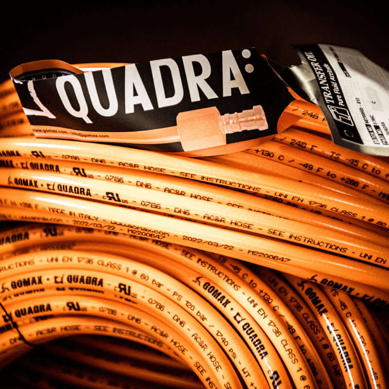 Il tubo termoplastico flessibile GOMAX® QUADRA DN2 (diametro interno 2 mm) disponibile in due colori, arancione e nero, rappresenta il sistema più efficiente e sviluppato per il collegamento di manometri, pressostati e punti di prova della pressione.